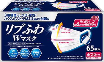 本体・フィルター部:ポリプロピレン、ノーズワイヤー・センターワイヤー:ポリエチレン、耳ひも:ポリエステル・ポリウレタン